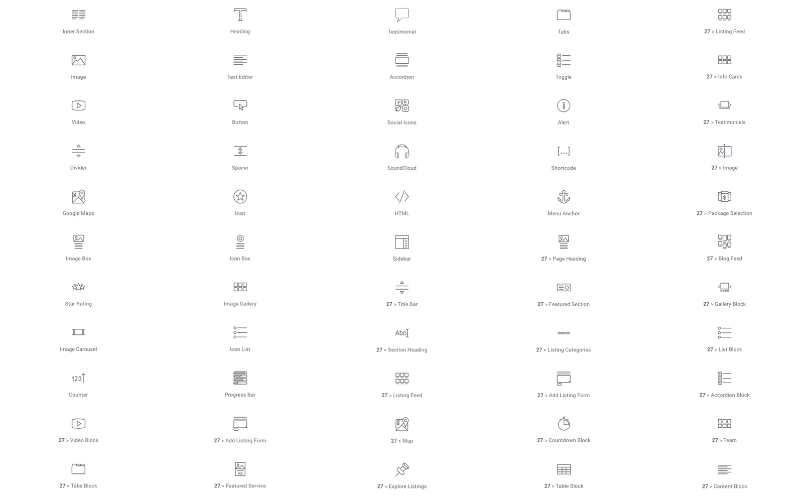 50+ Elements available to design pages out of the box. Add more using elementor plugins and addons